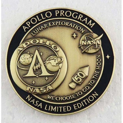 This NASA Official Limited Edition Medallion commemorates America's monumental team effort, the first humans on the moon and this mission's 50th Anniversary. In addition to celebrating these historic achievements, it also looks to the future of deep space exploration, from our return to the Moon, to Mars and beyond. To represent each objective, these medallions are minted with rare, lunar flown Apollo Command Module and Mars Curiosity engineering metals. Production of this official commemorative has been limited to 25,000 pieces. This distinctive, educational packaging was also designed as this medallion's Certificate of Authenticity.