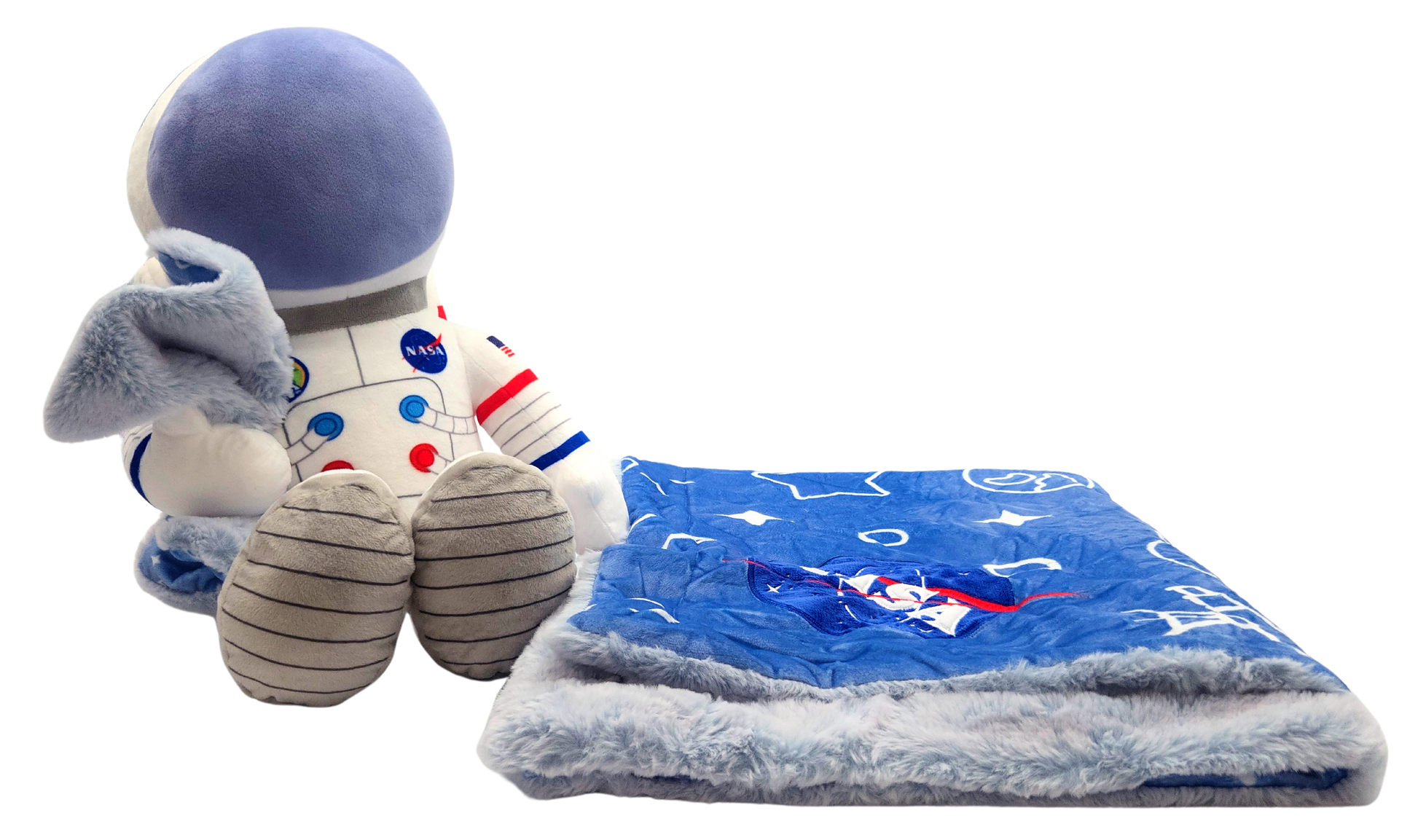 Offer the NASA Astronaut Blankie Bestie to your customers, a versatile 2-in-1 plush and blanket duo that’s perfect for young space enthusiasts. This ultra-soft, officially inspired NASA product transforms from a cuddly astronaut plush into a cozy 42 x 32-inch blanket. Compact and machine washable, it doubles as a carrying bag, making it ideal for travel, playtime, or naptime. Designed with vibrant details and premium materials, this Blankie Bestie is a must-have for retail stores and gift shops.
