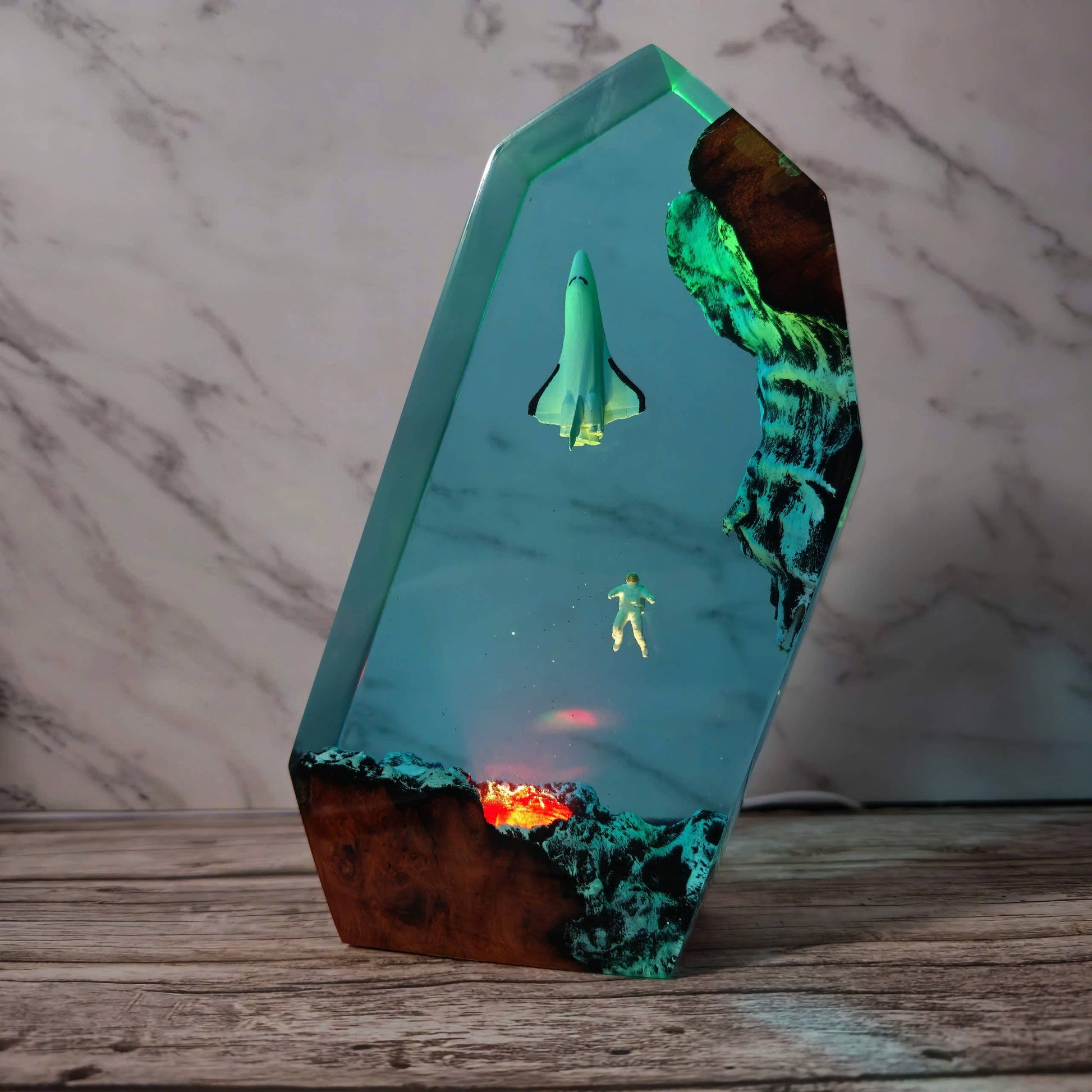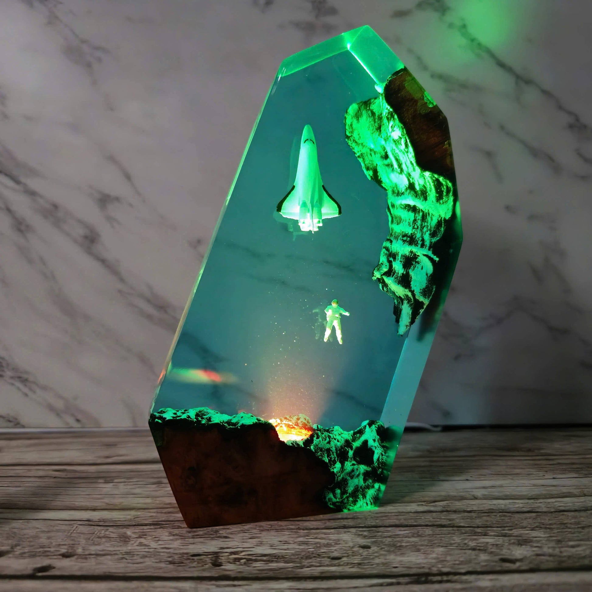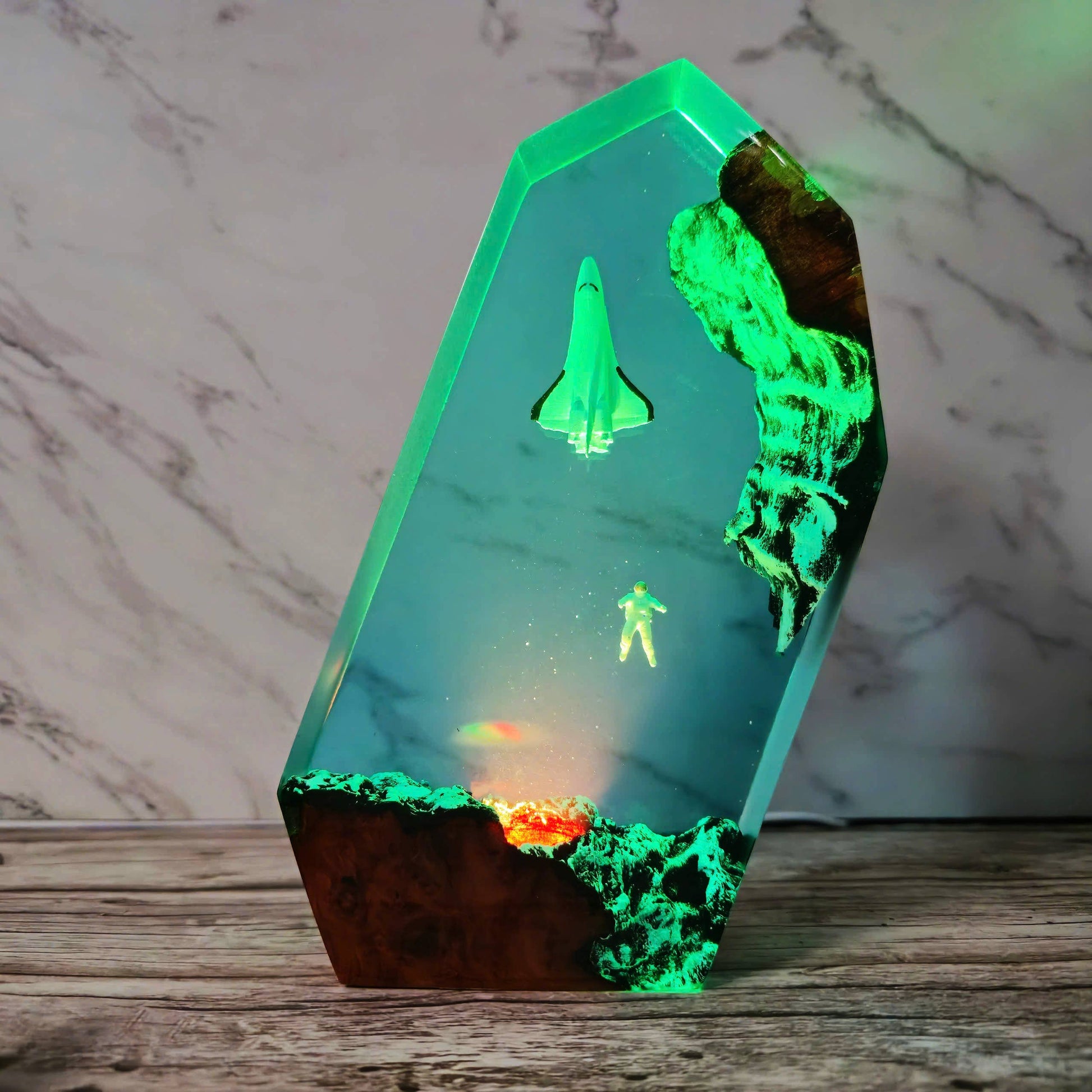 Space Night Lights, Astronaut Rocket Resin Wood Lamp
