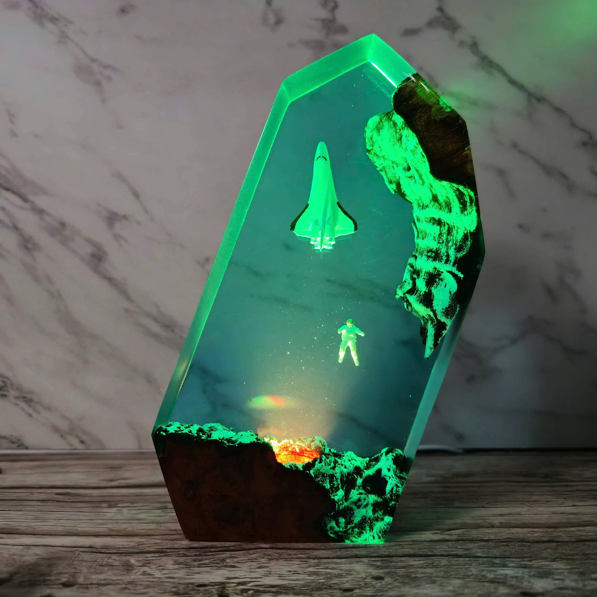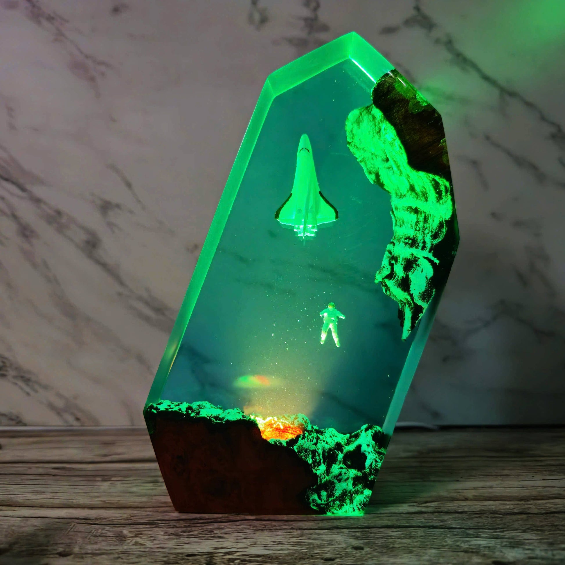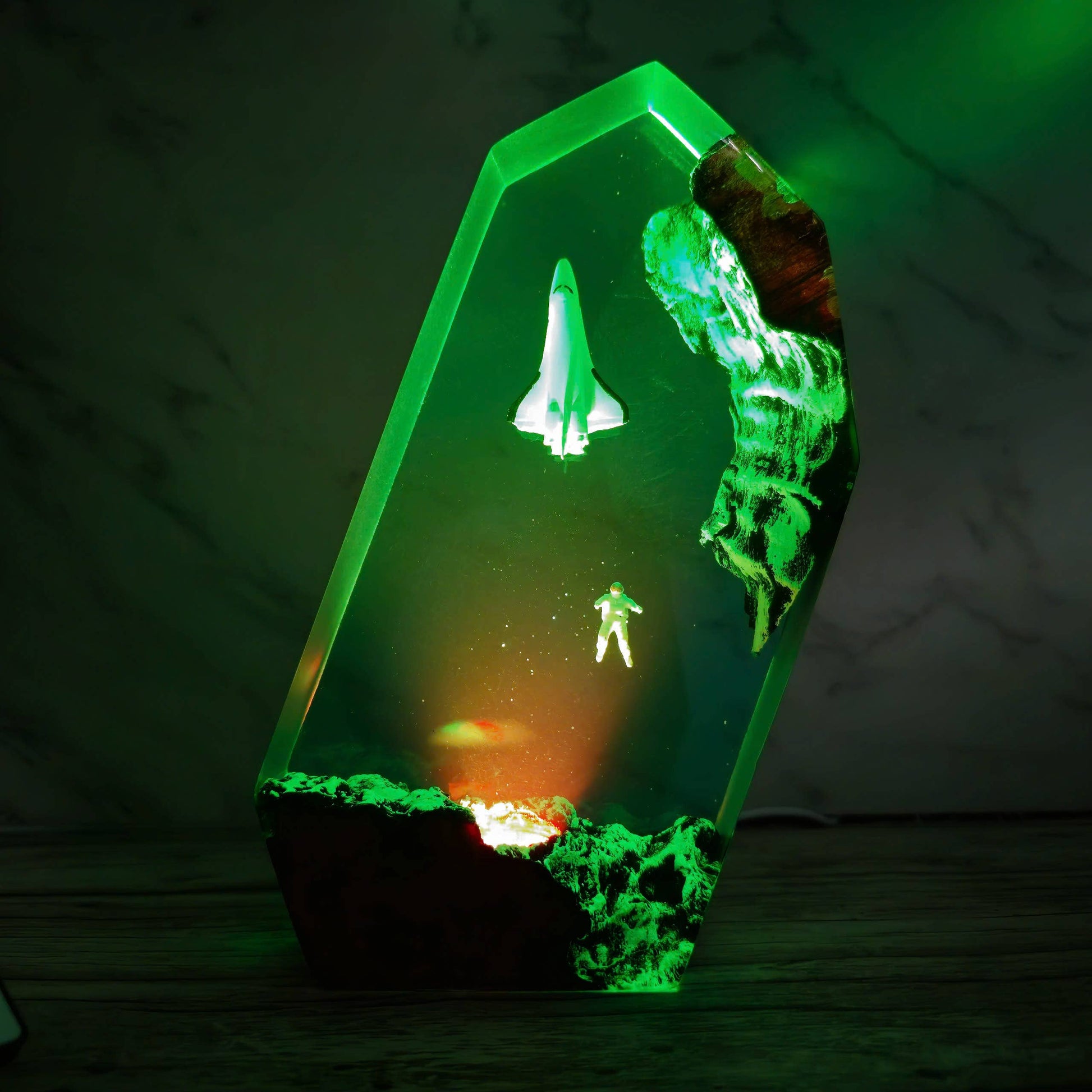 Space Night Lights, Astronaut Rocket Resin Wood Lamp